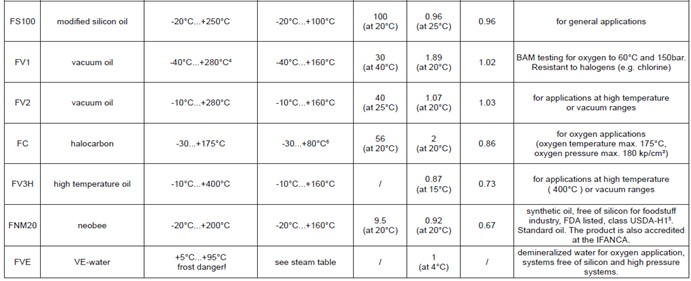 可提一定范圍的物質(zhì)如壓力傳送液體,適用于特殊工作。請參考下表和恰當?shù)臄?shù)據(jù),以獲得詳細信息。